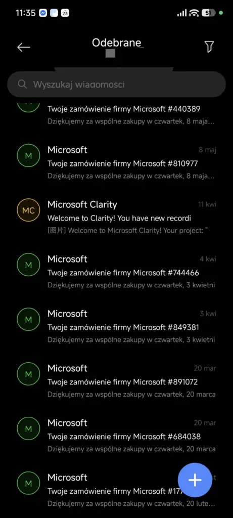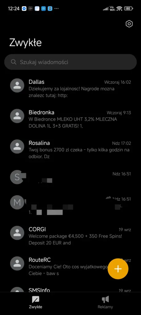 W aplikacji SMS zmiany także są głównie kosmetyczne. Największą nowością jest przycisk „miotły” na górze ekranu, który pozwala oznaczyć wszystkie SMS-y jako przeczytane. Cieszę się z tej zmiany, aczkolwiek uważam, że nie byłaby ona aż tak potrzebna, gdyby w pewnym momencie, jeszcze za czasów HyperOS 1, Xiaomi nie usunęło przycisku oznaczania SMS-a jako przeczytanego z powiadomienia o nim…