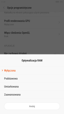 - Funkcja „Optymalizacja pamięci RAM” w Ust. programistycznych