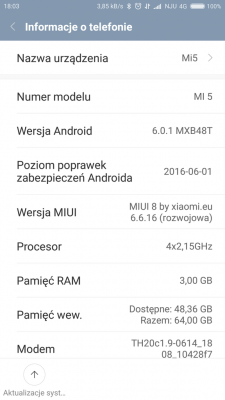 - Aktualizacja do MIUI 8 (wersje .16 i .17)