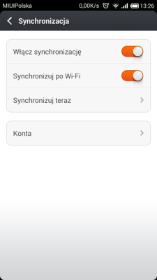 - Ustawienia > Synchronizacja – możliwość synchronizacji wszystkich kont na raz lub wyłączenia synchronizacji