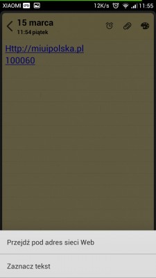 - możliwość przejścia pod link lub numer telefonu z notatki