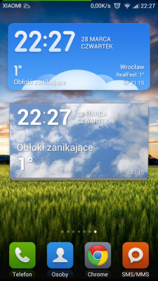 Do romów MIUI v5 dodaliśmy tym razem pakiet żywych ikon. Nie jest ich dużo ale może z czasem pojawią się następne. Bajer polega na tym, że mamy na pulpicie ikonkę zegara, w którym ruszają się wskazówki, ikona kalendarza zmienia datę a ikonka Notatek pokazuje ich początkowe wyrazy. Jest też animowana ikona pogody Weather BZ, na której wyświetla się temperatura.