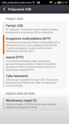 - Dodana opcja Ustawienia > Połączenie USB. Z wyborem między rodzajem podłączenia urządzenia do PC (PTP/MTP/Pamięć USB/Tylko ładowanie) (Redmi)