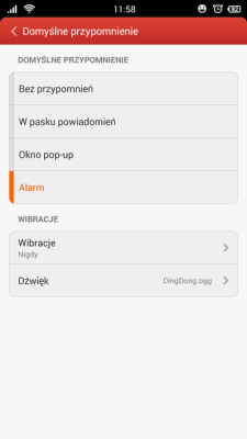 - Czwarta opcja w powiadomieniach kalendarza: Alarm z możliwością ustawienia indywidualnego dźwięku powiadomienia z zapętleniem