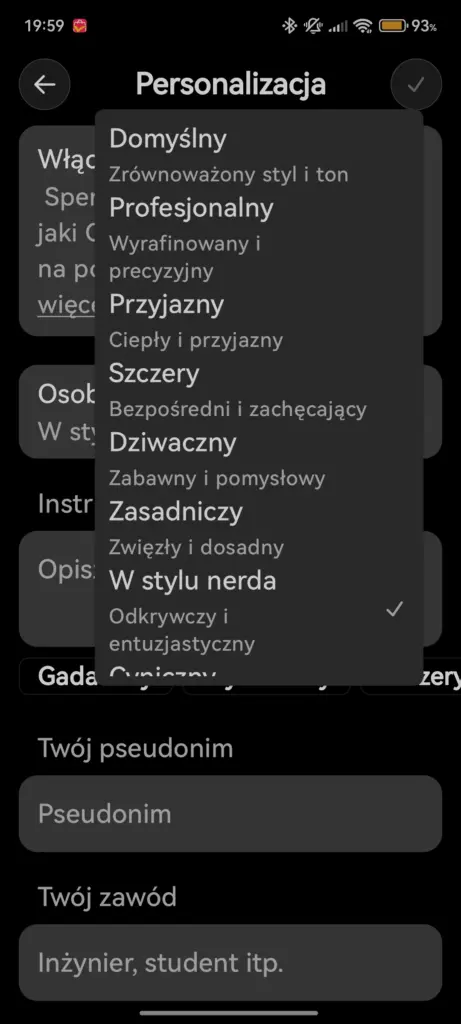 Istotną częścią GPT-5.1 jest rozszerzona personalizacja. Użytkownik może wybrać jeden z sześciu stylów konwersacji – od profesjonalnego po bardziej bezpośredni. Zmiany wprowadzane są natychmiast i obejmują wszystkie trwające konwersacje, a sam model może sugerować zmianę stylu, jeśli zauważy, że inny sposób komunikacji lepiej pasowałby do aktualnego kontekstu.