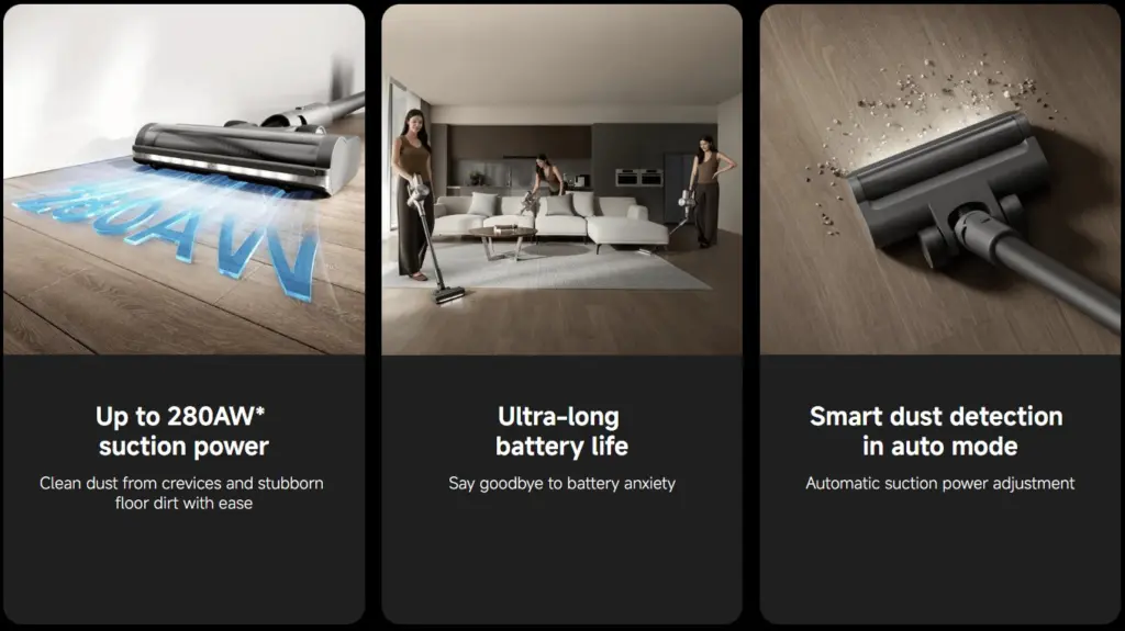 Model G30 Max chwali się parametrami, które brzmią imponująco: aż do 280 AW siły ssącej w trybie turbo oraz według testów producenta maksymalnie 25 000 Pa siły ssania. To dane, które dla użytkownika poszukującego efektywnego odkurzacza bezprzewodowego mogą być bardzo zachęcające. Do tego dochodzi wydajna bateria, dzięki czemu w trybie Eco urządzenie to może działać do 90 minut, co dla jednopokojowego lub średniej wielkości mieszkania może być wystarczające.