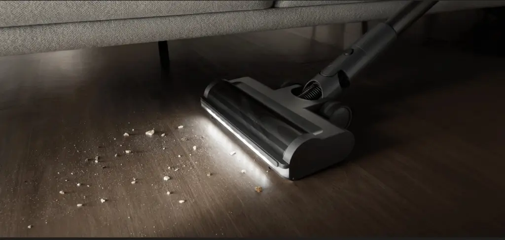 - Oświetlenie LED w szczotce głównej pomocne w wykrywaniu kurzu w mniej oświetlonych miejscach.