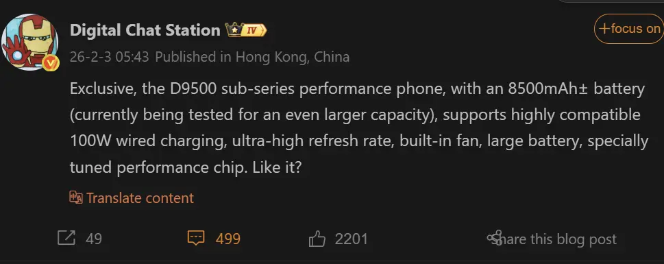 Jednym z najgłośniejszych przecieków jest informacja, że REDMI K90 Ultra może otrzymać akumulator o pojemności aż 8500 mAh, czyli jedną z największych baterii widocznych w nowoczesnych smartfonach. Co więcej, pojawiają się informacje, iż REDMI nadal prowadzi testy, aby zmaksymalizować tę pojemność, a jednocześnie utrzymać szybkie ładowanie przewodowe o mocy 100 W (PPS). Dla porównania, poprzedni model K90 Pro Max oferuje baterię o pojemności 7560 mAh z szybkim ładowaniem 100 W i bezprzewodowym z mocą 50 W.
