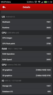 O wysokiej wydajności MI3 było wiadomo już w zeszłym roku, podczas pierwszej konferencji, na której pokazano model z Tegrą 4 i najszybszym wtedy Snapdragonem 800 MSM8974AB. Ostatecznie jednak do naszego modelu WCDMA trafił nieco inny wariant CPU: 8274AB, charakteryzujący się jedynie brakiem modułu 4G, który w 8974AB występuje. 8274AB posiada więc taką samą wydajność, jak najwyższy wariant Snapdragona 800.