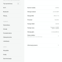 MiPad działa pod kontrolą najnowszej wersji nakładki MIUI. Została ona w tym wypadku dopasowana do działania na tablecie – widać to przede wszystkim, po zajrzeniu do opcji urządzenia. Całość została rozplanowana w sposób, bardzo przypominający rozkład opcji w iOS. Lewą stronę zajmuje kolumna menu, a z prawej strony wprowadzamy już konkretne ustawienia. Całość sprawuje się wyjątkowo intuicyjnie, nawet dla osoby, która z MIUI nie miała wcześniej nic wspólnego.