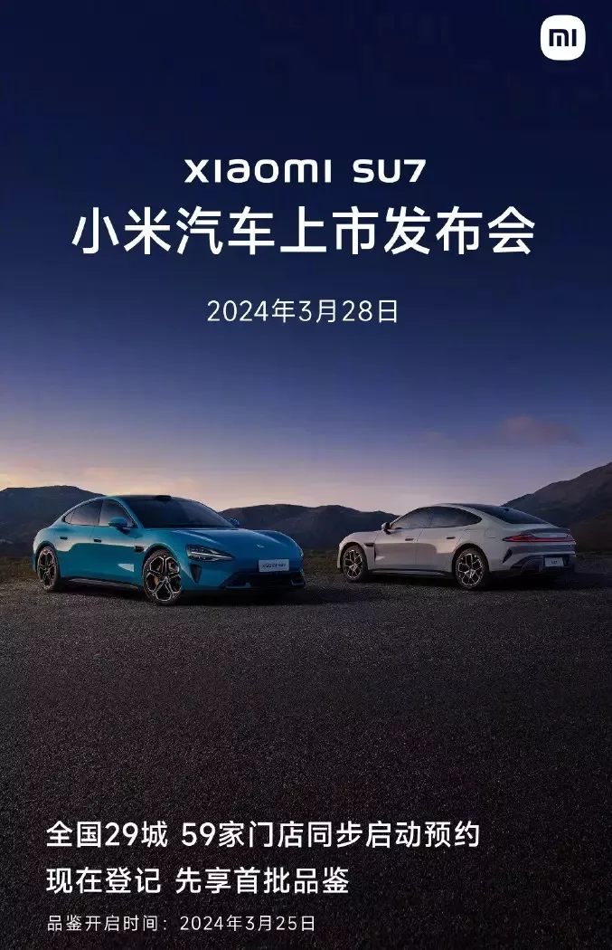 28 marca to historyczny dzień dla Xiaomi, gdyż tego dnia SU7 zostanie oficjalnie wprowadzony na rynek chiński. Wiadomość ta, została opublikowana za pośrednictwem oficjalnego plakatu na chińskiej platformie mediów społecznościowych Weibo, gdzie Xiaomi ujawniło również, że potencjalni nabywcy będą mieli okazję zapoznać się z SU7 już od 25 marca.